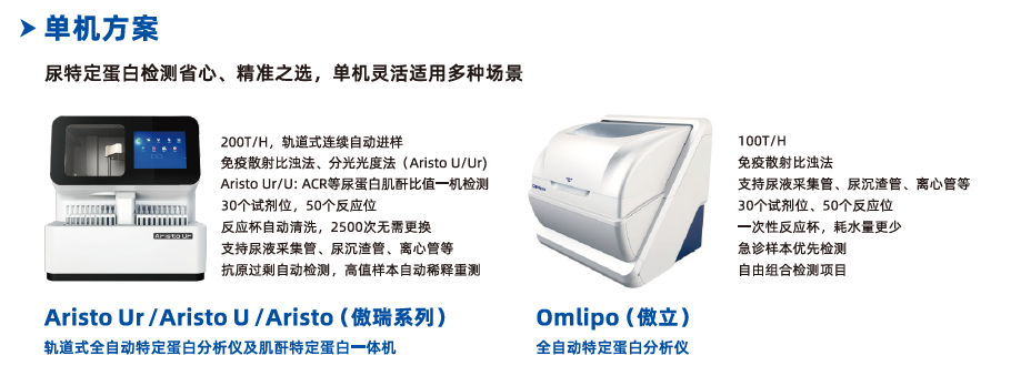 Aristo U/Ur特定蛋白分析儀是國賽生物推出的一款高端特定蛋白檢測儀,采用免疫散射比濁法和分光光度法,具有精密度高,檢測速度快,獨特的尿液封膜穿刺技術,同時該機型具有軌道式自動進樣系統,支持流水線聯機,可做到血尿分檢,減少檢測過程中交叉污染的發生。可提供ACR報告及豐富的尿蛋白系列檢測項目,為早期CKD篩查提供優質的解決方案。